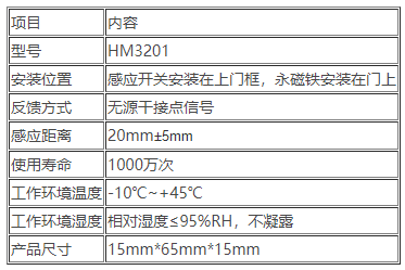 二、HM3201門磁開(kāi)關(guān)技術(shù)參數(shù)